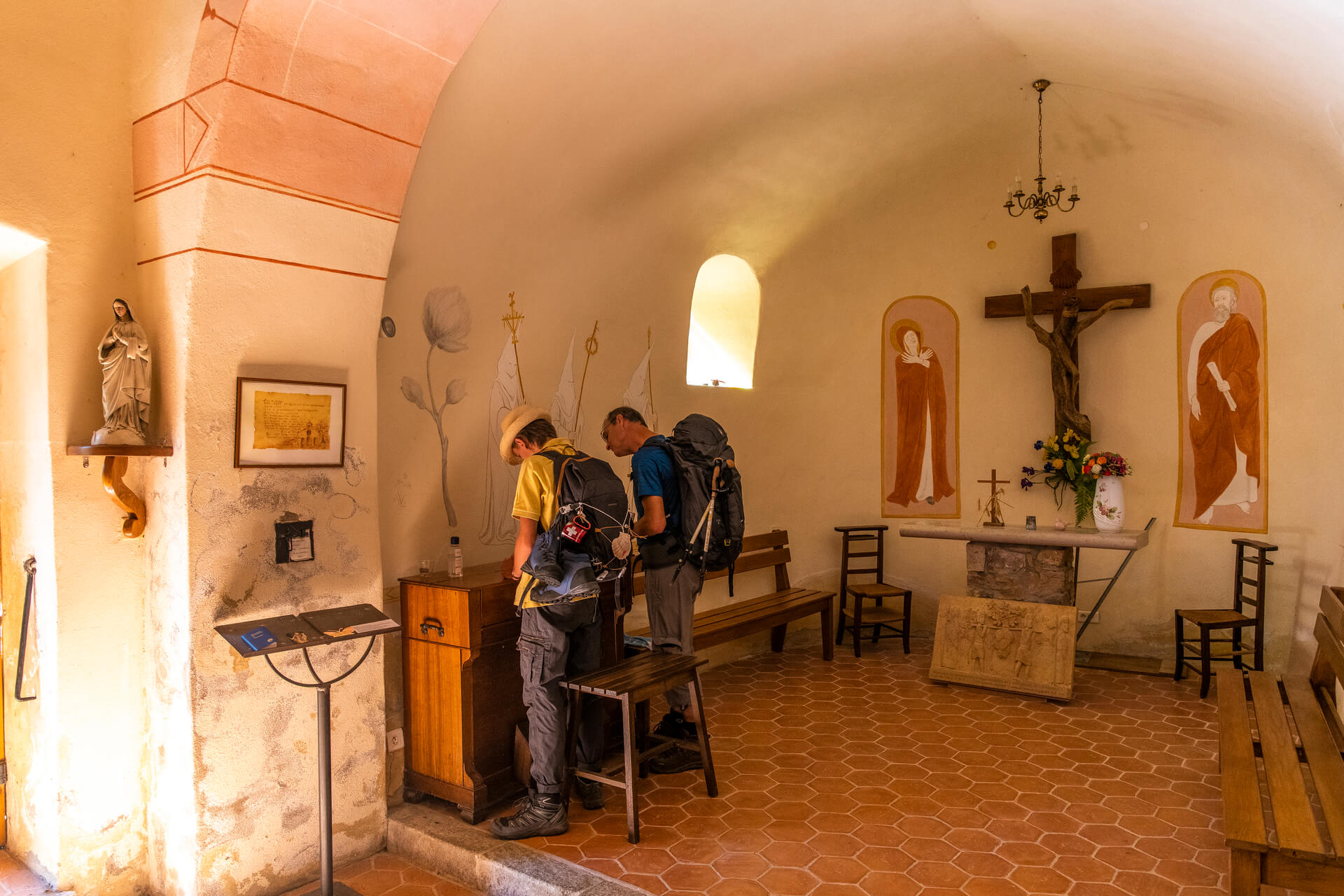 – Une statue Saint Jacques de H. Piquemal et une statue de pèlerin de Marcel Cellard en 2003,